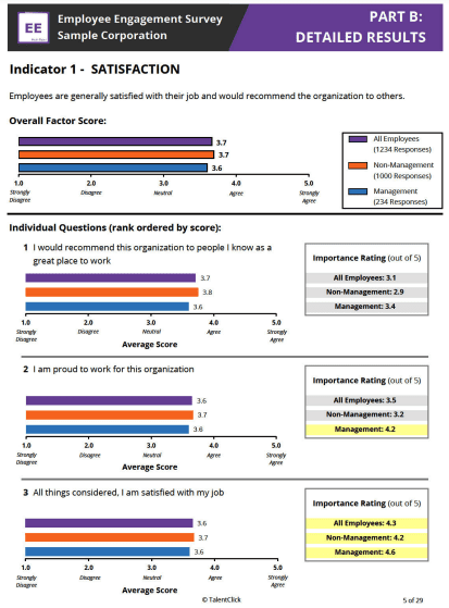 The Employee Engagement Survey takes 12-15 minutes to complete. Results are compiled confidentially by TalentClick and delivered in a detailed master report.